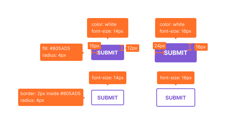 - Variant: A component can have different visual styles (e.g. outline, solid, ghost)